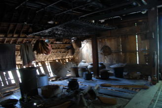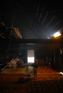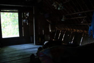 | 東南アジア大陸部の農山村をほうぼうと歩き回った。そうした地域は、日本からみれば周縁の周縁であり、経済状態や物質の保有という面では、日本で暮らすわたしたちのそれらとはずいぶんおおきな違いがある。 家屋やそこでの暮らしも比較的簡素であるが、それだけに光も自然のままに近い。昨年の3月に訪れたラオス南部セコン県のラウィーの人びとの村で、一組の老夫婦の家屋を調査した。80歳も超えたかとみられる夫婦はふたり暮らしで、質素ながらもしあわせそうに暮らしているようだった。 精緻な文様が施されたその家屋は、妻入りの高床形式だった。妻側の一面は壁がなく、そこに階段が取り付けられている。その階段を上ると、平側の長さの半分以上におよぶ深い軒先空間となる。そこは夫婦の昼間の居場所となっていた。その奥に扉がもうけられた壁があり、その壁の向こう側が屋内空間である。だが、扉以外建具のないその屋内は、扉を開けてさえも驚くほど暗い。わたしが実測をするには、目をよく凝らすか懐中電灯の助けを借りなければならなかった。だが、当の老夫婦は、いともやすやすと暗闇を動き回るのだった。そこには、きっと順応ということもあるだろう。長い時間をそこで生きれば、身体感覚がフィットし、いつの間にか、とくに意識せずに暗いなかを自由に動くことがある程度はできるはずだ。 こうした生活空間は特別なものではない。わたしが2年のあいだ滞在したアカの人びとの家屋は、暗いことこのうえなかった。 わたしがそうだったように、アカの人びとの家屋にはじめて足を踏み入れた人は、屋外から射し込む光の少なさにまずは驚くことだろう。しかも、暗闇のなかに、そこの主人である男性が座って、こちらを注視していることに気づいたりすれば、さらに驚くことだろう。 |