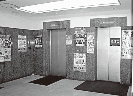 ![]() 雑然とした1F EVロビー |
