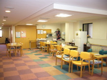![]() 客室を改修し確保された居室階の食堂 |