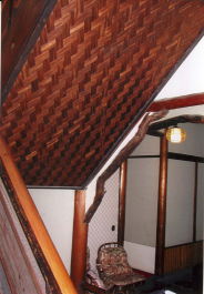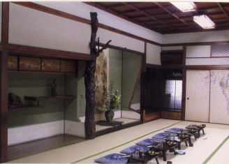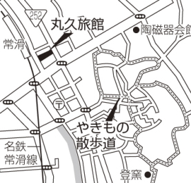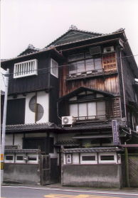 | ■発掘者のコメント 丸久旅館は、名鉄常滑駅の東に隣接している。昭和11年築の木造3階建て、通りに面して粋な外観を残している。以前から気になっていた建物の一つで、先般、JIA愛知の美術サロン会員と共に、やきもの散歩道をスケッチした後に歓談しようと企画し、利用させていただいた。 一番東に3階建てがあり、大正期・戦後の2階建てが長く繋がっている。常滑市榎戸の棟梁により工事がなされ、当時は材料がなく苦労したが、3階までの通し柱を使っていると伝えられている。かつては、西側に伊勢湾が広がり眺望が良く、船が横付けされ、海釣を楽しむ客で賑わいを見せていたとのこと。常滑駅も今ではセントレアへの通過駅となっているが、以前は終着駅、その先は海であった。 外観は、屋根が入母屋造り、開口部に多種の庇が付けられている。2階の中央に半月模様の窓が強調され、割烹旅館としての姿を醸し出している。 玄関を入ると脇に腰掛けがあり、応接へと続く。南に3階への階段、西に帳場・板場と連なっている。応接の奥に主階段があり、段裏に網代を使ったり、手摺などに凝った意匠が施されている。 2階は宿泊用の客間が4部屋あり、個々に違った意匠となっている。 3階は、40帖の大広間があり、床間・違い棚・書院と5間巾あって、床柱は太い自然木が用いられ、格天井と共に、外観からは予想できない空間となっていた。襖絵も桜・夏華が描かれ華やかさを添えていた。大広間の窓を開ければ、隣家の屋根越しに、赤レンガの煙突が望まれ、往時の煙が立ち昇る様も想像された。 この建物は、駅周辺の再整備計画により、近い将来、取り壊しの運命にあると聞いた。襖絵に目をやると、桜花がややさみし気に映った。 |