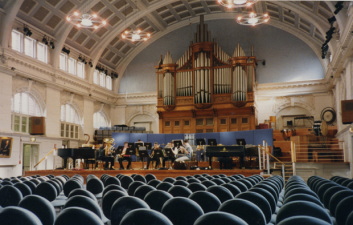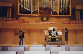 | ロンドン王立音楽大学ホール 500席 | 愛知県芸術文化センター コンサートホールでのリハーサル。 ナチュラル・トランペット(筆者)とオルガン |