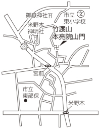 | ■発掘者コメント 日進の米野木の交差点から北に行き、細い路地を登っていくと山門が現れる。近くには神社もあり、昔からの集落の雰囲気を漂わせている。 明治8年まで渡辺家の菩提寺であったが、廃藩置県により渡辺家からの供養料も途絶え、管理運営が難しくなり、日進市藤島町にある龍谷寺に恩金を上納し、米野木字一帯を譲り受けた歴史がある。渡辺家の先祖は白川天皇より出て、代々皇室に仕え軍の指導に当たった。有名なのは大江山の酒天童子の乱を平定した功績により渡辺姓を賜ったとのことである。また奥方である貞之方の先祖は徳川家康であり、尾張徳川家の八代宗勝の孫に当たる。山号の竹渡は奥方の実家の姓「竹越家」の竹と「渡辺家」の渡に由来する。寺号は奥方の戒名「本亮院殿釈尼僧貞大姉」の院号をそのまま寺号としている。 本堂は後に、建具などを入れ替え屋根も葺き替えてある。庫裏も、補修し(記録が残っていない)アルミサッシに替えてある。山門は多少の補修などはあるが当時のままであるらしい。ただし板塀は最近建て直した。 今日まで、200年以上も当時のままで残っているのは、米野木村の人々が領主の菩提寺として、また明治以降は檀家として、寺を愛し守り続けたおかげである。我々もこのような気持ちを持って保存に努めたい。 所在地 愛知県日進市米野木町宮前56 創 建 寛政3年(1791年) 開 基 渡辺半蔵家( 三河寺部領1万4千石)綱保氏(尾張国五千石の領主で三大家老の一人)の奥方貞之方 |