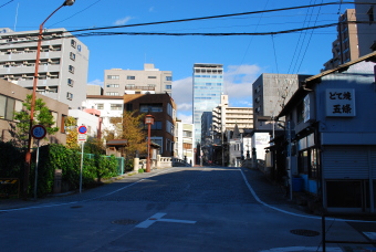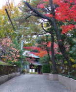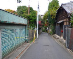 | ■発掘者のコメント 鉈薬師は、覚王山日泰寺の北西に木々の生い茂った細くゆるやかな下り坂の途中にあります。 寛文9年(1669)、明国の帰化人で藩祖徳川義直の御用医師を務めた張振甫により創建されました。豊かな緑に囲まれる赤い壁の薬師堂は当時の上野村陽光院(現在の永弘院)から移築されたものです。堂内には本尊の薬師坐像と、円空が名古屋城築城の余材を鉈一本で彫ったという日光・月光菩薩、守護神の十二神将の像が並んでおり、鉈薬師と呼ばれる由縁がここにあります。また振甫が明国の王族であり、医師としてこの地で暮らしたことにちなみ医王堂とも呼ばれます。これらの円空仏は毎月21日の10時から14時に開扉され、お参りすることができます。 この辺りはもみじが群生しており、初夏は新緑、秋は紅葉が一帯の景色を美しく彩ります。鉈薬師は東側と南側が接道していますが、特に南側の坂は「もみじ坂」と呼ばれ、紅葉のトンネルの先に薬師堂がはすむいて佇んでいる景色はまた何とも風情があります。 ところがこの坂のふもとでしばらく凍結していた高架道路の建設が再開しました。この道路開通により周辺環境が良くも悪くも大きく変化することは間違いありません。鉈薬師かなる影響が及ぼされるのか今後も見守り続けたいと思います。 敷地東側道路もゆるやかな勾配と豊かな緑に包まれた心地よい小路なのですが、道路建設に反対する住民の訴えが今も強く表現されています。 |