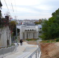 | 薬師堂 | 紅葉坂より薬師堂を見る | 建設中の高架道路。右側森の奥に鉈薬師 | 東側道路。「高架反対」の文字が見える |