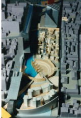 | 1992年、JIA発足6年目の福田一豊愛知部会長(鋤納忠治支部長)のとき、新装成った愛知芸術文化センターにおいて「パブリックアートへの提言」と題して建築展’92を開催しました。広瀬一良実行委員長の下、17人の委員が幾つかの部門に分かれて業務を分担しました。私は若手(当時)として、四間道界隈と堀川再生の模型を担当し、好きに作ってよいとの委員長の言葉のまま、アート空間を創出してみました。 四間道は、元禄13年(1700)の大火の後、防火や町人町の区画を目的に道幅を4間に広げたのがその由来とされています。堀川は、慶長15年(1610)、名古屋城築城の折、福島正則の総指揮により開削され、四間道はこの堀川の西岸に位置します。四間道の商人は、米や味噌といったかさばる商品を扱っており、運搬には堀川の水運を利用していたようです。そのため、五条橋や中橋のたもとには、かつての荷揚げ場の石畳を見ることができます(名古屋市教育委員会資料)。 模型ではこの堀川と四間道のつながりを昔のようにより密接にできないかと考えて親水空間を造って名古屋にもこのような場ができるのだとの思いを描いていました。 今回、久しぶりに四間道を歩きながら周りを見渡すと、当時よりは周囲の高層ビルが増え、建て替えられた民家も点在していました。都市空間の中にぽかっとタイムスリップしたような町並みには幾つかの変化はあるものの当時の情景を思い浮かべることができましたし、五条橋たもとの「どて焼き」の店が残っているのには驚きました。 |