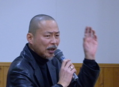 | 続いては「建築界の兄貴」前田紀貞さんの登場です。50歳には見えない精悍な体に端正なマスク、松岡修造タイプの体育会系の匂いを感じます。また、丸刈りのヘアースタイルは鎌倉幕府と戦う日蓮上人といった感じでしょうか。「建築と同じくらい若い人を育てていきたい」の言葉どおり事務所、大学、建築塾や建築サロン「典座」というバーまでさまざまな活動をなさっています。 まず最初に建築家にとって大切な3つのことを語られました。1、私を照らす。2、私を超える。3、空(空間)です。「私を照らす」とは灯台にたとえて、灯台(私)は世界(知識やテクニック)を照らします。これではいい建築はできない。灯台(私)の足元をもっと見つめるべきである。「私を知らなければ建築はできない」と語られます。 人間は半年から1年で細胞がすべて交代することから、C、H、N、Oなどの分子がその都度住処にする場所ととらえることができる。また、世界の事象は複雑に関連しているという「相」の思想から建築を発想、思考している。そのため、建築以外のバイクやアメ車や波乗りやロック、演劇、映画、哲学などさまざまなこと(相)に興味を持ち「遠い所の相を引っ張ってきて建築をつくる」とおっしゃっていました。 「いい意味で強制する人が少ないのが寂しい、ただしケツを最後に持つ人」と、前田さんが作成した若者心得を教えていただきました。これは20年ぐらい修正しながら続いているそうです。「己の自然(じねん)に委ねる」。偶然(自然)を味方につけるシステム(ルール)を持つため、私を超える必要がある。これは私を「無」くすことではなく、私を「空」ずることである。何だか仏教の説法のようになってきました。 後半は「セルロイドジャム」「プラスチックムーン」「ピクニック」「ボトムアップ」「アルゴリズム」などの作品をご紹介いただきました。これらは「空の建築」であり、空気の質を設計されたそうです。前田さんの建築に対する心得や思考は私の世代にはぴったり来るのですが、それを真剣に実践しておられる姿に感動しました。スタッフの方を怒鳴りつけている愛情一杯の前田さんの青筋が目に浮かびます。 最後に「人の居場所をつくっていきたい」とおっしゃっていましたが、自分の居場所を懸命につくられているように感じました。 |
