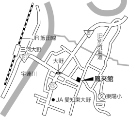| 鳳来館本館(旧大野銀行銀行本店本館) | 鳳来館ギャラリー蔵(旧大野銀行本店土蔵) | 鳳来館本館の木造階段 |