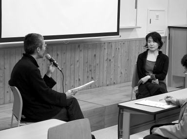 | 3月13日、構造家の佐藤淳氏、テキスタイルコーディネーター・デザイナーの安東陽子氏のお二方によるご講演を頂いた。建築物の中で、屋台骨と包むインテリアとの関係性で何か共通する部分が見られ、とても面白い内容の講演となった。 | ||
