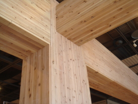 | 木造建築は、これまで構造解析や構造設計がしにくい建築物と言われてきた。 その理由の一つに、木材は自然材料であるため、性能のばらつきが大きく、節や割れなどの局部的な欠点が生じやすい点が挙げられていた。 性能のばらつきや欠点をなるべく小さくするために開発されたのが、再構成材に代表される木質材料である。再構成材は、木材を一旦小さい断面に加工し、それを接着剤などで再び組み合わせたものである。 |