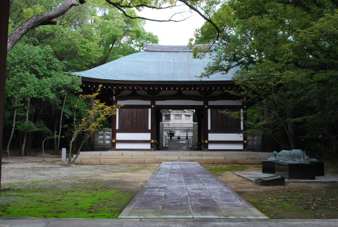 | 礼拝殿の奥に奉安塔が見える | 奉安塔を取り巻く土塀 | 通天門 |