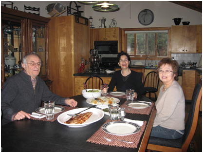 | 今回は、前のアパートが教員用から大学院生用になっていて入居できないとのことでした。仕方なく大学が紹介している周辺のアパートなどを出発前にネットで検索してみたのですが、やはり実際に見ないと決められないので、当面、近くのB&Bに宿泊する予定を立てました。出発前プーランに連絡をしたところ、とりあえず1週間ゲストとして彼らの家に滞在するようにと言われ、甘えることにしました。彼らは、約15年前に大学から歩いて15分位の住宅地に一戸建ての家を買ったのですが、4分の3エーカー(約900坪)の土地に小ぶりな住宅がついています。斜面に建てられており、半地下の部分には1寝室のアパートをつくっていました。上階のリビングに上がると軽井沢のような光景が広がってとても素敵なのですが、地下室の小さな窓からはほとんど外が見えません。 1週間はゲストということで、おいしいイラン料理を毎日食べさせてもらいました。魚の蒸し焼きやチキンの煮込みに細長いライス付きです。食事ごとに違う料理が並び、野菜たっぷりのサラダとともにいただきます。プーランはお料理上手なだけでなく、室内はいつもきれいに掃除し、靴は玄関で脱がされます。イラン人も最近は室内で靴を履くそうですが、伝統的には上足文化で彼らは上靴をはいています。私たち日本人が靴を脱ぐ習慣なのも親近感を持たれました。 ZIA家のアパートは、LDKに1ベッドルーム、1バスルームの住戸です。夫妻は以前から地下のアパートを人に貸したいと思っていたものですから、私たちも強く勧められました。私たちも、いろいろ面倒見てもらえるのは楽かなと考えましたが、窓がほとんどないのと、台所の換気に難があったので、別を探すことにしました。 |
