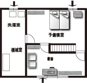 北側は床上2mくらいが地下なのでその上に小さな窓がある![]() 床上1mくらいまでが地下なのでその上に大きな窓がある |