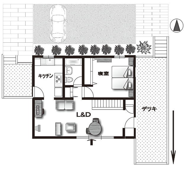 | 南の窓から見た庭の景色 | 1階平面図 | |