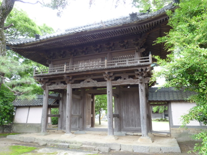 | ■紹介者のコメント 岡崎市の中心部から南西方向の矢作川沿いにこの本光寺がある。矢作川の対岸は安城市で、岡崎市の西端である。本光寺は、真宗大谷派の寺院である。本堂は、1894(明治27)年に庫裏と共に焼失したが、第32 代恵暢(えちょう)が再建し1913(大正2)年に落慶供養法要を行っている。 入母屋造り、桟瓦葺きで、3 間の向拝が正面に付く。典型的な浄土真宗平面で、三方に広縁とその外に1段下げた落縁を廻し、内陣の背面に僧の出入り口を設けた後門形式である。内陣まわりの黒漆地に金箔貼りの彫刻や絵模様はおごそかで、近代的な装飾意匠である。京都にある東本願寺の影響を強く受けた、当時は豪華で庶民好みの代表的な浄土真宗の歴史的建造物である。ただ現在は、思ったより老朽化しており、鉄骨による補強がなされ、文化財としては少々残念な結果となっている。 本光寺山門は、1827(文政10)年の再建といわれている。本堂の東、通りに面した位置に建っている。入母屋造り、桟瓦葺きの3 間1 戸の楼門である。下層の外周は開放し、上層は正・背面中央に桟唐戸を建て、ほかは格子をはめた板壁となっている。組物は正・背面中央間に出組、左右間と側面は詰組としている。内部には釈迦如来像など三尊を安置している。浄土真宗の寺院の山門が楼門でつくられることは珍しく、近隣でも類例をみない貴重な建造物である。 所在地:岡崎市上青野町新井1 登録番号:本堂 23-0249 平成19(2007)年10月2日 山門 23-0250 平成19(2007)年10月2日 参考資料:文化庁登録説明資料ほか |