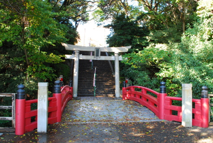 | 二の鳥居と空堀りにかかる反橋 | ||