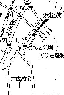 所在地:三重県四日市市高砂町6-12 構造・登録番号: 玄関棟/木造2階建て、入母屋と寄せ棟造り、桟瓦葺き、建築面積152㎡(24-0090) さつき棟/木造平屋、切妻造桟瓦葺き、建築面積56㎡(24-0091) 建設年代:玄関棟/明治年代 さつき棟/昭和30(1955)年頃 参考資料:「四日市市史第五巻史料編/民族pp.748-758」に「浜松茂」全体の建物配置図および平面図が掲載されている。 |