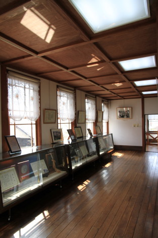 | 明治洋風建築としての全景(西南面) | 洋風上下窓がおしゃれな2階会議室 | 石畳の上り坂と街並み | |