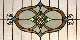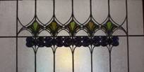 | ①デザイン構成 欄間のステンドグラスのすべてに菱の紋様が入り、縦格子に中心模様。左右、上下、または対角に対称模様。 |
