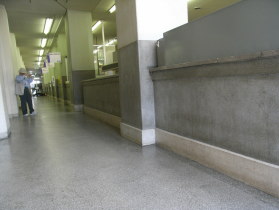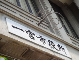 | ■発掘者のコメント 大正10(1921)年市制が施行され一宮市は誕生し、市制10周年を記念してこの建物は建てられた。中庭に議場を設けたE型プランの2階建て鉄筋コンクリート造に、新築時は木造平屋が中庭を閉じるように建ち、ロの字型平面となっていた。日本の鉄筋コンクリート造建築は大正初期に始まり、東海地方の庁舎建築の鉄筋コンクリート造は大正末期の旧岐阜県庁舎(1924年)、旧加納町役場(1926年)、昭和初期に一宮市役所、名古屋市役所(1933年)、静岡市役所(1934年)、静岡県庁(1937年)、愛知県庁(1938年)と続いた。鉄筋コンクリート造の庁舎はさほど多くはないが、いち早く一宮市庁舎をつくったのは繊維産業で栄える当地の勢いだったのだろうか。 北東角を隅切りした正面玄関は端正な顔立ちで、天井照明廻り・廻り縁・柱などに控えめながらも装飾が見られる。玄関前で国旗を交差させて掲げるための金物も朽ちることなく現存する。外壁は縦長の窓を挟むように2層通しの大小の柱が繰り返し並び、人造石塗りの仕上げには切石積み風に目地が切られている。玄関を入ると正面に階段。左右に進むと客溜まりと執務室を区切るオープンなカウンターが伸びている。この形態はそれまでにない試みであり、「日本の市庁舎ではじめて採用された」と当時の竣工写真帳にも記されている。階段の親柱や議場2階の傍聴席を支える片持ち梁など、幾何学模様のデザインが面白い。 昭和35(1960)年に新庁舎の建て替えが検討されたが、当時は反対の声が強く隣接地に増築することとなった。再び平成21(2009)年に合併特例債による建て替えが議論され、分散化する庁舎を統合するよう建て替えが決定した。戦災を免れ長きにわたり一宮の近代史を眺めてきた歴史遺産だが、いよいよ役目を終えようとしている。 |