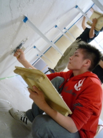 | 作品ギャラリーの制作風景(漆喰塗り) | 長ホゾ込栓の加工(腰掛待合の制作) | 大工棟梁 中村武司氏による説明(腰掛待合の制作) | |