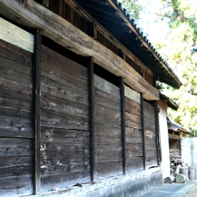 | ■発掘者のコメント 豊橋市の東部郊外にある鞍掛神社は、山裾の葦毛(いもう)湿原に近い、こんもりした鎮守の森に抱かれた「村社」として、私の幼少時の昔懐かしい情景を留めてくれている。 一帯は鎌倉幕府樹立直前の源頼朝上洛伝説に因む名跡が多く、「鎌倉街道」を辿る頼朝公が「駒を止め」「鞍を掛けた」のが当地区という。「駒止之櫻」は神社脇の小川沿いに今も何代目かが残り、小ぶりの石碑が立っている。 鞍掛神社の現地案内板・社伝によれば、現在地南の米山に鎮座された米山大明神(または鞍馬大明神)が、文治4年(1188年)今の地に遷された。源頼朝が上洛途上にこの地を通り、乗って来た馬の鞍を奉納して武運長久を祈願したことから「鞍掛神社」と改めたという。 幾つかの鳥居の正面の本殿は堂々の神明造りで、左に古びた倉舎、右に新しめの社務所を従える。今春、久々に境内深く訪れて驚喜したのは、こんなに身近なその倉舎に、どこか素朴な伝統工法「板倉造り」を再発見したことであった。 正倉院であまりにも有名な「校倉造り」の影に隠れて見過ごしていた伝統木造工法が近年、旧知の安藤邦廣教授の研究・実践などに先導された「板倉構法」として脚光を浴び、日本の森林保全・木造技術復権・災害復興~恒久住宅のエースの1つとなっている。この倉舎にしばし正対して、「村」の匠と民が協働でつくり上げ営々と使い継がれてきた姿に想いを馳せる…鎮守の森にいい時間が流れる。 |