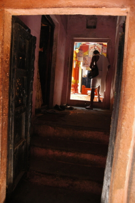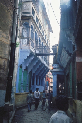 | インドの住居は地方によってさまざまであるが、地域や民族・文化の違いを超えた一定の共通性が見られる。それは中庭を中心とした住居形式である。 中庭式住居はモエンジョ・ダーロ遺跡からも数多く発掘されており、その歴史はインド文明とともに古い。風や光といった自然環境を住居の中で担保するのが中庭の第一の機能であろう。世界の中庭式住居が、主として高密な都市部で成立したのはそのためである。しかし同じくらい重要なのは、中庭が屋外の開放性を、屋内と同等の安全性やプライバシーを確保した上で、享受するための空間である点だ。とりわけ熱帯地域では、風通しのよい外部空間が生活の中で活用される。その観点からは都市と村落の区別はなく、実際に北インドの中庭式住居は村落部の単純な一室住居から漸次発達して成立したという説もある。中庭式住居の発祥が都市か村落か、今のところ答えは定まらないが、ともあれインドの住居の多くは中庭を中心とするのである。前回取り上げたヴァストゥ・プルシャ・マンダラによる住居レイアウトの規定でも第一に挙げられるのは、住居の中心は中庭にすべし、というものであった。 インドの各地にさまざまな様式や形態の中庭式住居があり、貴族や大商人による邸館とでも呼ぶべき大規模なものが有名であるが、以下ではヴァーラーナシー旧市街に見られる(今のところ)ごく普通のありふれた伝統的な中庭式住居を事例に、インドの住生活の一断面を眺めてみたい。 |