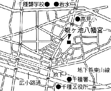 | ■発掘者のコメント 地下鉄池下駅ができた頃に比べると、池下界隈の様子は随分と変わってきている。変わってないのは以前から気になっていた蝮ヶ池八幡宮と駅近くの小さな飛地境内社。蝮という名称も尋常ではないし、通りから続く石段も気になるものの、何となく行きそびれていた八幡様を訪ねることにした。 訪れる前に、千種区役所で町名の由来を調べると、地下鉄池下駅から東にかけて蝮ヶ池という大池(縦180間、横60間の2haで、池下駅と厚生年金会館跡)があり、この池は末森城の真西、または、ここから真西に名古屋城があるので「真西が池」が転化したのか、とある。別の由来では、この池の周りは蝮が多かったので、「蝮ヶ池」と名付けられたともあった。事実、池下から大久手にかけては、とにかく池や沼が多かったようである。 大正10年、千種耕地整理組合が発足し、翌年から池の埋め立てが始まったが、事故が相次いだため、池の底であった箇所(飛地境内社)に「龍神社と弁天社」を祀って工事安全を祈願しているようだ。私もかつて池下で住宅を設計した折に、あまりにもひどいボーリングデータに驚いたことがある。 飛地境内社(龍神社と弁天社)の小さな社から北に数分歩くと、うっかりすると見逃すような幟が立った導入口と、それに続く数十段の石段を登りきった丘に「蝮ヶ池八幡宮本殿」がある。私が訪ねた3月中旬はまだ寒く、境内には訪れる人も少ないようで、住宅に囲まれた境内は大木に囲まれて静かであった。 境内の由来には、今から300年以上前、徳川初期の寛永年間に造営されたとある。御祭神は第15代應神天皇で、昭和20年の空襲で社殿を消失したが、昭和26年に新たに社殿が落成し、盛大な遷座祭が行われている。昭和49年には伊勢神宮のご神木を造営用材として下賜されて末社社殿が造営されている。 |