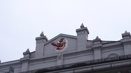 | 建築当時の写真 | 現在の全景 | 天狗の意匠と尖塔 | |