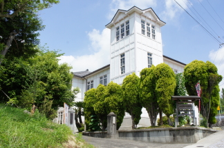 | ■発掘者のコメント 四郷(よごう)村はこれといった資源もない小寒村であったが、幕末から近年にかけて製糸・製茶・醸造・それらの関連産業が盛んになり、近代産業の発祥地として三重を代表する経済・文化栄える村となった。これら産品の輸送のため、四日市まで村の有志により県内初の私鉄(内部(うつべ)・八王子線)が敷かれたほどで、全国でも珍しい特殊狭軌のミニ電車(軌道幅76.2cm)のかわいい車両は、存続の危機にあるものの今も通勤・通学に利用されている。 明治22(1889)年の市町村制の実施と同時に四郷村が誕生し、昭和18(1943)年に四日市市と合併、高花平、笹川といった大規模な住宅団地の開発により、現在では市最大の人口を抱える地区となっている。 四郷村役場は村の代表的な先人産業三重紡績(後の東洋紡績)の発足者伊藤傳七が郷土への恩返しにと、大正10(1921)年に6万円(現在の5億円?)の大金を寄付し建てられたものである。小高い丘陵の坂道を上っていくとシンボルの塔が青空を背景にそびえ立つ。木造2階建ての正面に車寄せと玄関があり、1階が執務室、2階が会議室や小部屋、モダンな応客用のカウンターなども当時のままで残っている。狭い螺旋階段を上がると四郷村が一望できる気持ちよさで、全国一の村役場と村民自慢の庁舎であったことがよく分かる。昭和40年代までは市の四郷支所として使われ、新しい支所ができたために閉所、取り壊しの運命だったが、地元民の存続運動で昭和57(1982)年四日市市有形文化財に指定され、「四郷郷土資料館」として今日に至っている。 設計者は当時東洋紡のお抱え技師であった野田新作(三重県初の設計事務所開設者)を中心とする設計組織で、庁舎のほかにも工場、社屋、学校、住宅など多くを手がけたが現存していない。 |