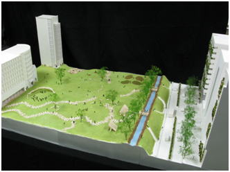 | 写真1・2 「みんなでつくり続ける水と緑の大地〜久屋大通〜」提案模型 | ||