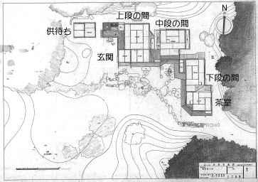 | ■紹介者のコメント 平成26(2014)年春、徳川園内5件、徳川美術館内3件が国の登録有形文化財(建造物)指定に答申された。「山の茶屋」答申への道は約1年前、1本の問合せの電話から始まった。それは旧知の畔柳武司先生が登録のための調査をされていて、山下武彦君と共に50年前まとめた大学の卒業論文・「山の茶屋・実測調査報告」(徳川美術館へ寄贈)についてのご質問だった。電話の後、何回かの応答や今までの研究者の論文、魚津源二氏らの調査が行われ棟札も見つかり、次第に「山の茶屋」の成立・経緯が明らかになった。 山の茶屋は明治16(1883)年に江戸浅草瓦町屋敷(元松平伊賀守屋敷5,252坪)に創建され、明治27(1894)年に尾張徳川家大曽根御邸内の現在地(美術館北東の木立の中)に移築された。 建物は、東西に上段の間、中段の間が並び、南北に下段の間・茶室をL字型に配置した独特の平面構成である。内部は掛込天井や砂壁、下地窓など数寄屋の趣向が見られる。 建物の特徴は上段の間を中心として構成されていること。床の高さだけでなく、出庇の高さや部屋の広さ、材料の扱いにも差がある。下段の間は水屋付でお茶や料理を準備する茶点所、さらに下手茶室は家来の控えの間ではなかったかと思われる。これらは武家の身分制度が明治16(1883)年にはまだ色濃く残っていたことを物語っており、いわば大名家の「数寄屋風書院座敷」といえよう。 浅草瓦町屋敷では庭園越しに隅田川を行き来する船や対岸の景色を愛でながら、開放的で眺望の良い上段の間で貴人をもてなし、主人自らも楽しんだのであろうと思いを馳せるのである。 |