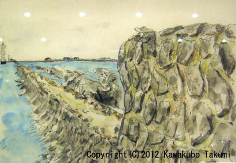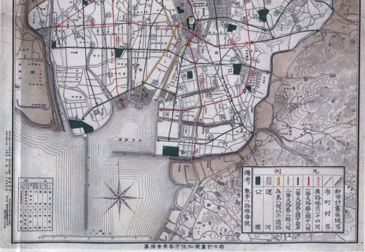 | 図3 大正15年の都市計画 | 絵2 伊勢湾台風で崩壊した石垣堤防の絵(筆者) | ||