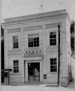 | ファサード(現在の姿・筆者撮影) | 竣工間もないころの正面写真 (下山郵便局より提供・昭和9年ころの撮影。以下同じ) |
