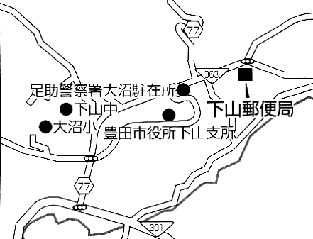 | ■発掘者のコメント 三河路を旧下山村に車を走らせると、三河湖方面と足助方面の三叉路の交差点右手に旧下山郵便局が突如現れます。郵便局長にお話を伺うために訪れたのは、山裾が紅葉で色づき始めたころでした。近年雨漏りがするようになり修理のことも考えなければならない時期に来たのかも知れなとのことでした。また、「当時から正面入り口の扉がアルミに変わり、向かって左側の局長室であったところの窓がアルミのドアに変更され、その他一部サッシに変わっておりますが、ほとんど当時の写真と比較しても変更されておりません」とのことです。 愛知県の近代化遺産によりますと「この建物は昭和6(1931)年12月11日に竣工している。建築面積124㎡、延面積147㎡、木造平屋建てだが、道路面(開口4.5間、奥行1.5間)を洋風2階建てとしている。モルタル塗りだが、石造風に横目地を入れ、正面に等間隔に配列した4本の柱は訪れる人に安心感を与えている。1階を客溜りと隣接した局長室、2階には和室6畳を2間付けていて、局員の休憩室としていた。局長室は上質な仕様で、竣工当時は、電話加入者は3件だが貯金預入高は12万円で、接待のための応接室として、白漆喰塗りで天井中心飾りにシャンデリアを付けていた。1階の執務部分は平屋建て寄棟造り、桟瓦葺きの局員事務室・作業室があり、電話交換室(12㎡)を付けている。昭和47(1972)年、隣地に新局舎が完成し、閉鎖された。以後、貸事務所として使用されたが、現在は郵便局の物品保管所となっている」とのことです。 |