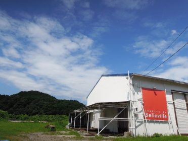 | 広さ10メートル四方。天井の高さ4・5-6メートル。客数は50から70程度。こんな小さな劇場が三重県津市の美里町に誕生したことはそれほど知られていない。市中心部から車で20分ぐらいの山あいにある。2014年11月23、24、30の3日間にこけら落とし公演「シンデレラ」が上演され、地元住民らは無料招待された。高齢の女性は「数10年ぶりにお芝居を見た」と感動した。津市長の前葉泰幸も関心を抱いて駆けつけ、終演後のアフタートークに登場した。劇場名は「テアトル・ドゥ・ベルヴィル」という。Bellevilleとは仏語で「美しいまち」という意味だ。美里町という住所と、後述するパリ20区に寄せて命名された。元資材倉庫の建物は、NPO法人パフォーミングアーツネットワークみえ(通称ぱんみえ)が所有者から 有償で借りている。同じように同NPO法人が自主運営する民間小劇場が、このほか同市内に2つある。ベルヴィルの場合は、東京から移転した劇団「第七劇場」が実際の管理を担当して、レジデントカンパニーとして活動しながら、同NPO法人に家賃や水道代と同額の金額を支払っている。 改装のための材料費やごみ処分費は約100万円。劇団の自己資金40万円のほか、残りは全国から寄付を募った。寄付をしてくれた人々の名前は木札に書いて劇場入り口に掲げ、感謝の気持ちを表現した。壁を黒く塗ったり床面をつくったりする作業は地元の人たちが手伝ってくれた。同NPO法人関係者には、劇場づくりの作業に加えて、倉庫に残っていた廃棄物の撤去などを引き受けてもらった。 |