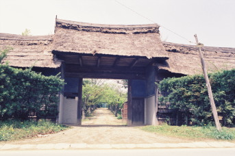 | 離れ外観(昭和50年)瓦葺き | 離れ外観(現在・休憩棟)鋼板葺き | 黒漆喰表門 | 現在黒漆喰表門 |